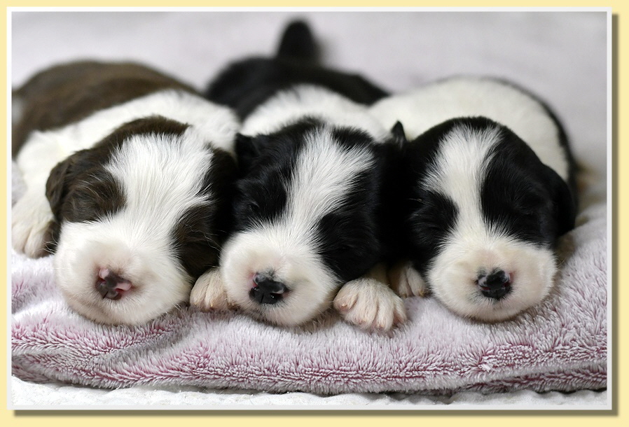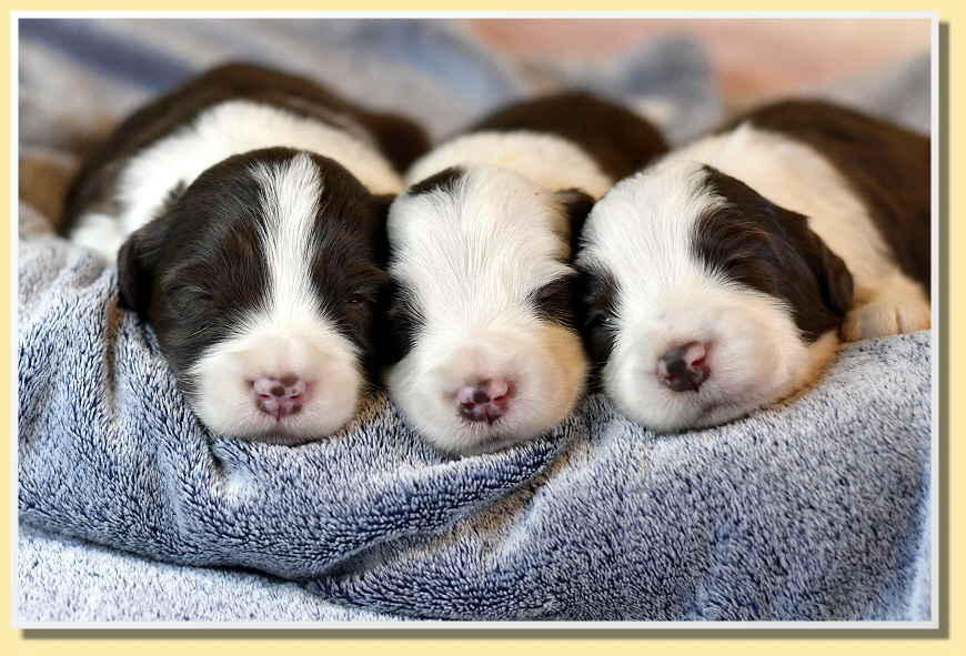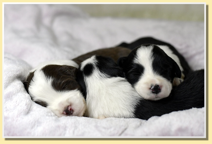 Langsam fangen sie an, an sich rumzuknabbern und die Geschwister zu entdecken. Die Augen haben inzwischen alle geöffnet und sie entdecken jeden Tag etwas mehr. Ab jetzt geht die Entwicklung in riesen Schritten voran und die spannende Zeit beginnt!