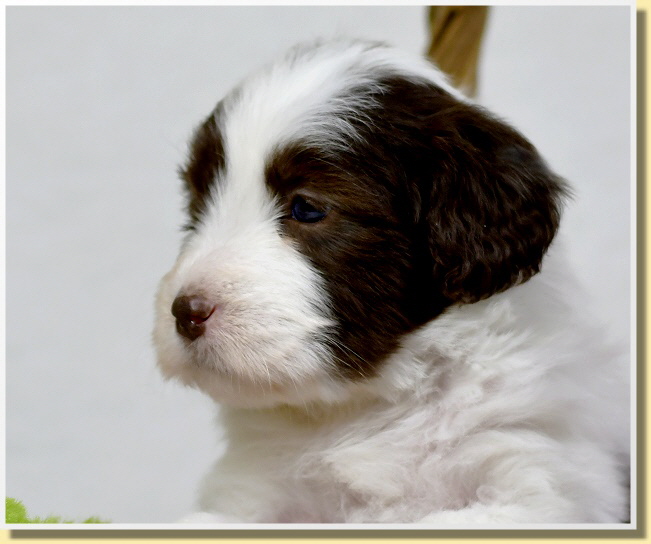 Heute werden die Wonneproppen von Leelly schon 4 Wochen und 2 Tage alt und es macht einfach nur Spaß mit dieser putzmunteren Bande! Der Erkundungsdrang ist riesengroß und so laufen die Kleinen völlig unbekümmert bereits von ihrem Welpenzimmer, durch die Hundeküche und möchten am liebsten schon draußen die weite Welt entdecken. Leider ist es dazu viel zu kalt!