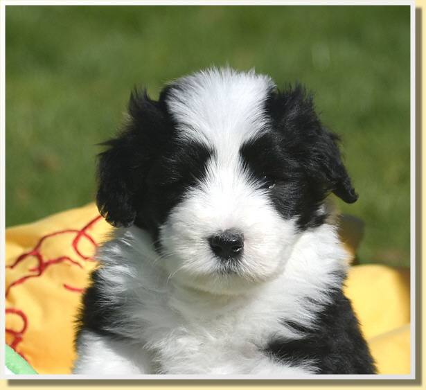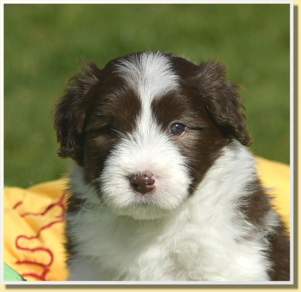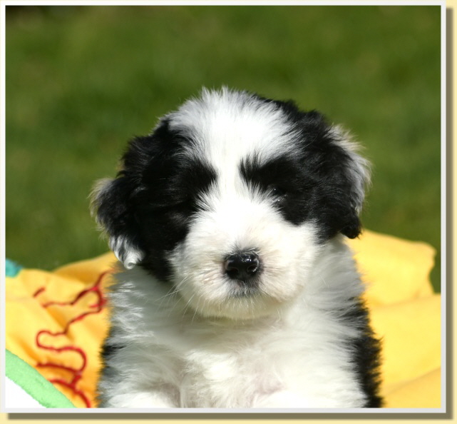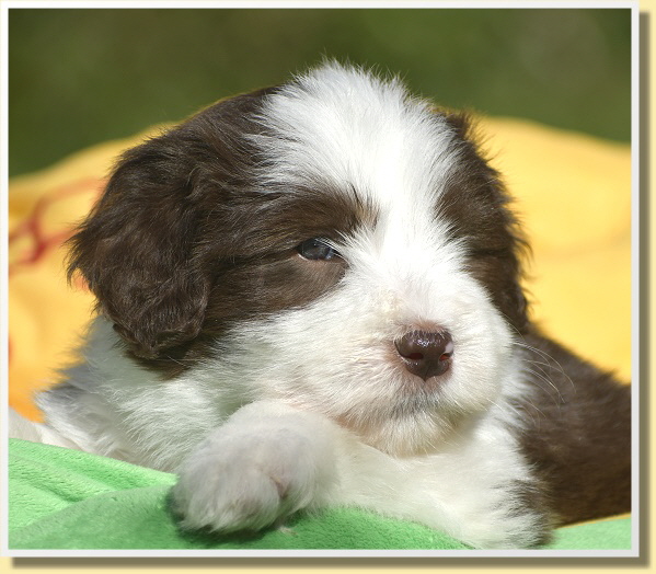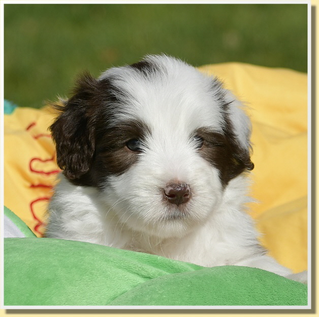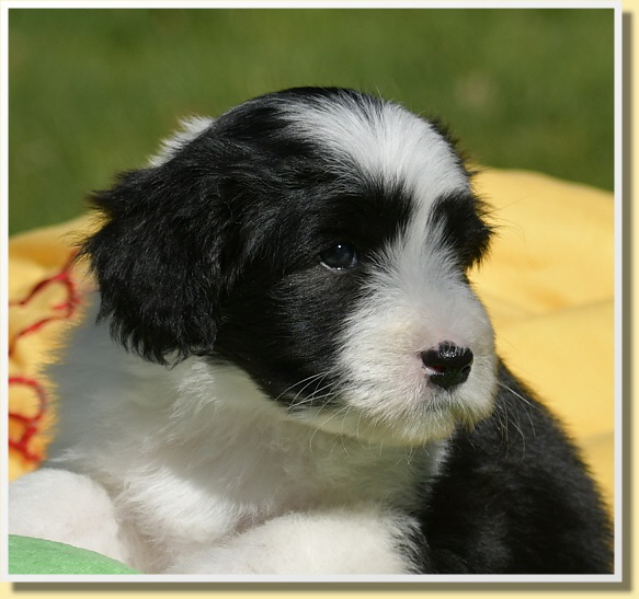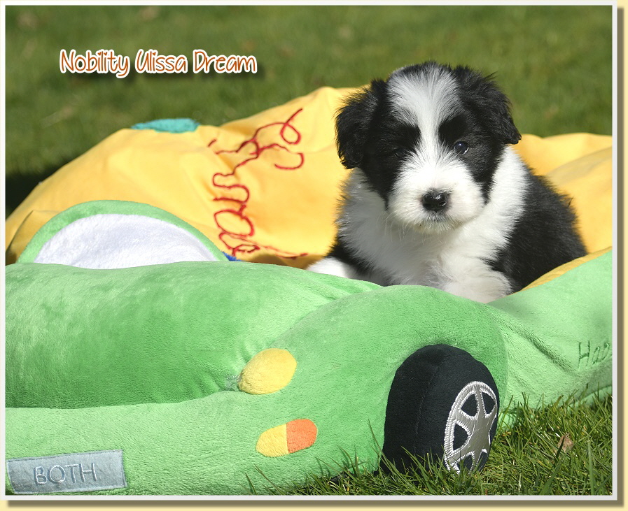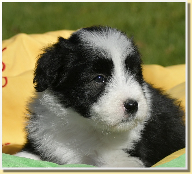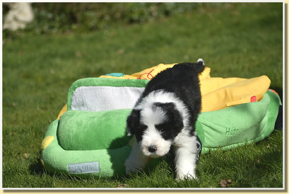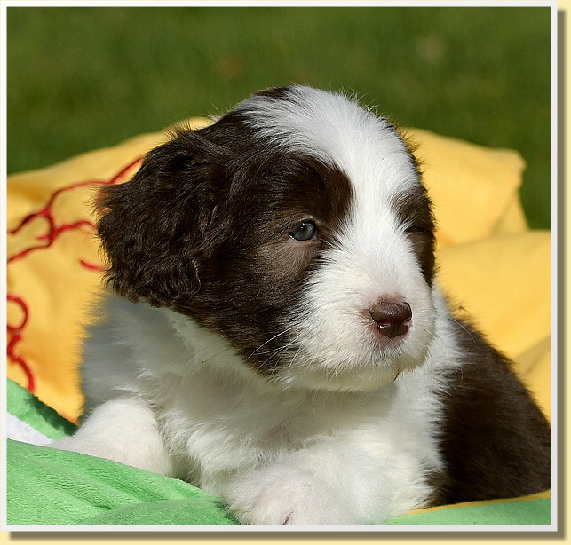 Letzten Samstag sind Leelys kleinen Wonneproppen schon 5 Wochen alt geworden und alles ist prima! Die ganze Bande ist sehr vorwitzig und unerschrocken. Inzwischen laufen sie schon auf ihrem Welpenspielplatz herum, als würden sie das schon viel länger machen. Dabei war ja die meiste Zeit bis heute schlechtes Wetter oder sehr kalt.