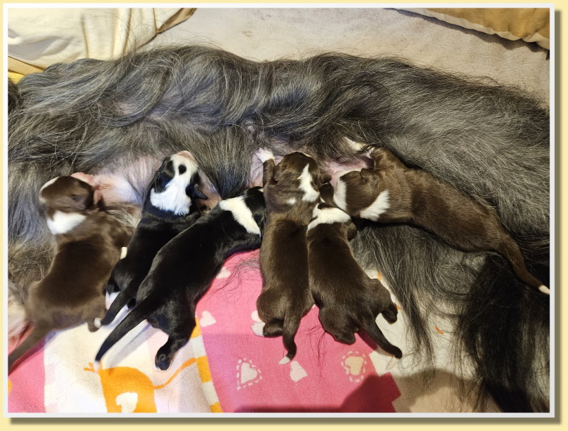 Nun liegt Susy genau wie Leelly glücklich und zufrieden bei ihren kleinen Prömmelchen und die machen natürlich auch nichts anderes als trinken und schlafen. Sie haben alle schon gut zugenommen und sind satt und zufrieden. Wir sind so stolz auf unsere Susy!