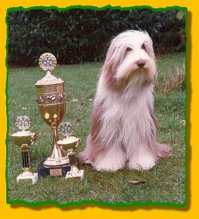 Molly stammt aus dem ersten Wurf unserer Traumkombination Cirby und Beach Boy. Sie war der letzte von 10 Welpen und fawn! Durch unseren B- Wurf( Beach Boy hatte drei fawnfarbene Geschwister) lernten wir diese Farbe lieben und freuten uns, dass in diesem Wurf gleich 4 Welpen fawn waren. Molly fiel gleich durch ihre tolle Zeichnung und intensive Farbe auf und sie entwickelte sich auch sonst sehr gut. Inzwischen waren wir mit Molly´s Besitzerin befreundet und irgendwann beschlossen wir, Molly sollte ausgestellt werden. Auf ihrer ersten Ausstellung in Castrop Rauxel, am 2.2.1992, erreichte sie V1, BOB und Best in Show! Wir waren superstolz! Es blieb nicht bei dieser einen Ausstellung und so wurde Molly unser erster fawnfarbener Champion.