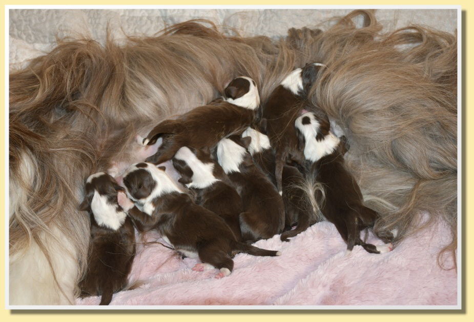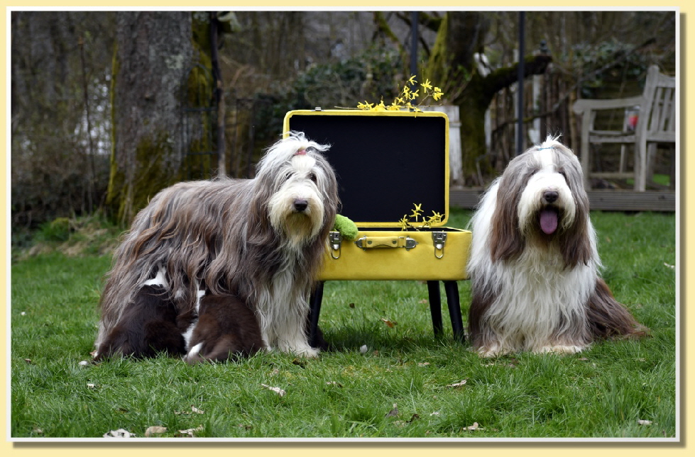 Zum Schluß wollten wir natürlich auch noch ein Bild zusammen mit Papa und Mama machen. Leider hat das gar nicht geklappt, wie man sieht. Sobald Ally ruhig stehen geblieben ist, wollten die Kleinen sofort bei Mama trinken!