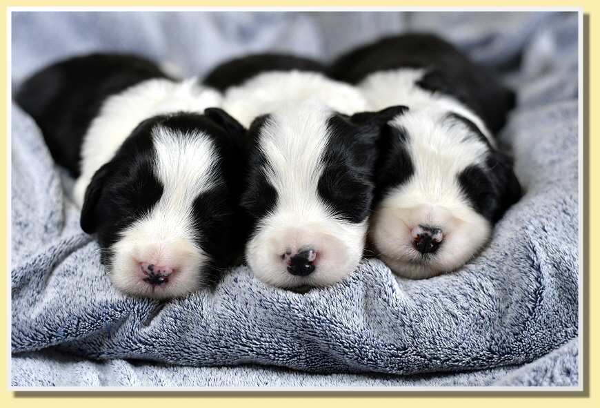 Langsam fangen sie an, an sich rumzuknabbern und die Geschwister zu entdecken. Die Augen haben inzwischen alle geöffnet und sie entdecken jeden Tag etwas mehr. Ab jetzt geht die Entwicklung in riesen Schritten voran und die spannende Zeit beginnt!