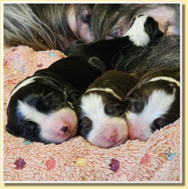 Nun liegt Susy genau wie Leelly glücklich und zufrieden bei ihren kleinen Prömmelchen und die machen natürlich auch nichts anderes als trinken und schlafen. Sie haben alle schon gut zugenommen und sind satt und zufrieden. Wir sind so stolz auf unsere Susy!